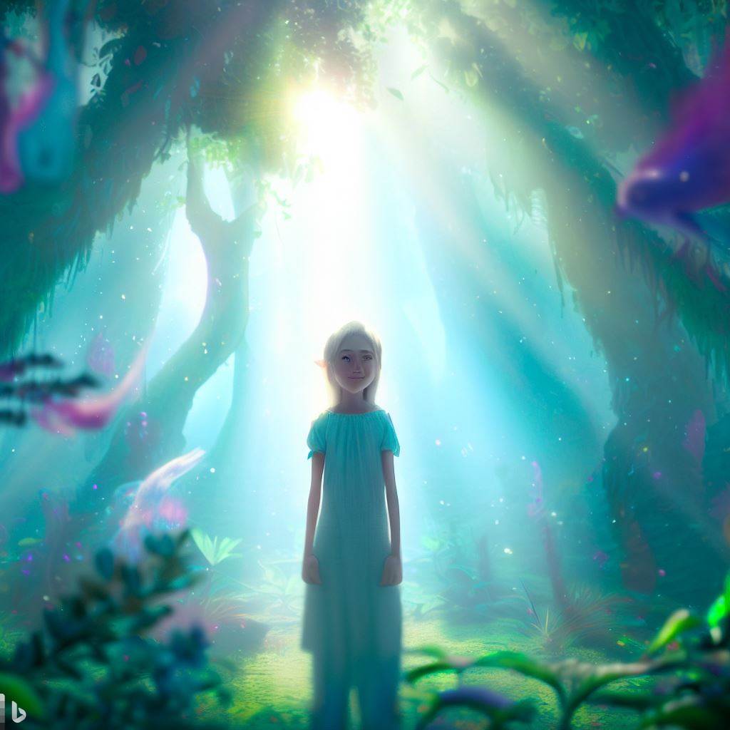 In the heart of an ancient forest, where sunlight danced through a canopy of leaves, there lived a young girl named Luna. She possessed a deep connection with nature and a keen sense for the mystical energies that flowed through the land. Luna's life took a fateful turn when she discovered an old, weathered book in the attic of her ancestral home. Its pages whispered ancient tales of an enchanted forest, a place where the veil between reality and magic was thin.