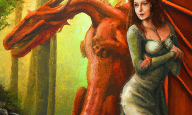 Imogen had been lying on her back in a dirtied white corset and ripped petticoat; it looked like the lining of a wedding dress. The edges of her hem were burned. She rose up off of the ground, vaguely noticing the dirt caked beneath her fingernails, hearing a low thud as her attention was pulled to the tree line on the left. A massive creature, eyes wide and gray-green, tail dragging along the forest floor behind it, stepped into the clearing and stared at her.