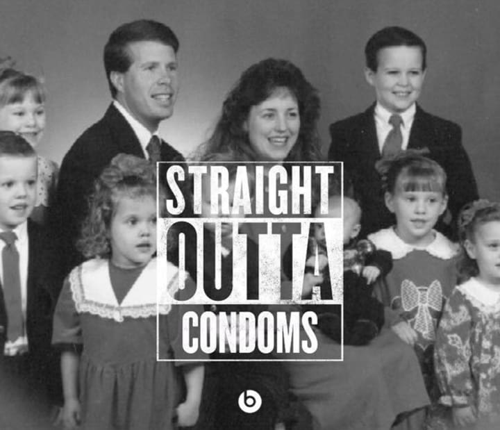 Who says funny memes can't be educational? What better way to get the "wrap it up" message across than by showing young teens a photo of the Duggar family and their 19 children? Be sure to follow up with their heart warming story, full of porn addiction, incest, and jail time to really get the message across.