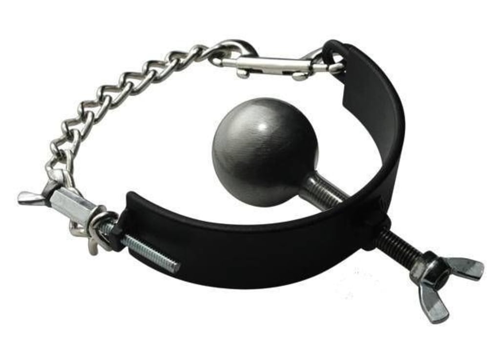 Mouthguards gags are similar to the mouthguards worn by football players and hockey players. They're usually attached to a front faceplate, like most plug gags, and straps from the front to the back. A muzzle gag works in a similar way as an over-the-mouth gag but it's usually made of leather and buckles. It's similar to a muzzle used for dogs. Muzzles can be attached to posture collars.