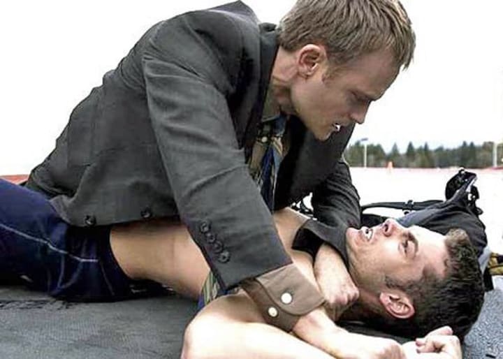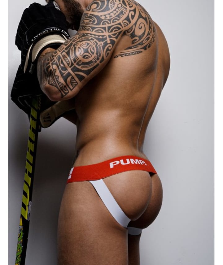 I never knew how Dax was like when he was angry or frustrated. I only knew what I wanted him to do to me when he was. I can see it. Right after losing a hockey game, still carrying his hockey stick, he finds me. I could ask "how was it", and he would would walk up to me and say "get down". I would say "what", and he would reach one hand to the back of my head and force me down in front of him until I was on my knees. I'm in a state confusion as he shoving my head into his crotch. He begins to remove his pants with one hand while the other holds my head in place. Less that 5 seconds later, his pants are off, and I'm being greeted by a PUMP jockstrap with a giant, heavy bulge. Dax moves the pouch to the side, releasing his thick white cock. Before I can realize the great length of it, it's berated into my mouth. My mouth isn't even open, that's how strong it is. 15 seconds later when I'm fully conscious of my surroundings again, I realize that it's not a police baton stretching my lips and throat. I take it down 2 seconds more, then, I struggle. I am only able to make a couple mumbles. It's not easy to speak with a cock in one's mouth. That makes Dax happy, in this situation. I'm trying back off, but his hands slamming my head onto his dick. At this point, I've become more desperate to breathe and start pushing on Dax's thighs. Dax just looks down at me and says things like "look at me bitch, oh fuck keep struggling, can you breathe". The only time he let's me off is to slap me, kiss me, or smother me with his chest.