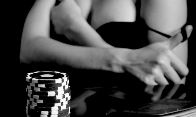 He walked behind her pushing her into the room when she stopped. Shutting the door, he began untying the corset laces of her dress. When it fell to the floor, he pushed her forward, so she stepped out of it, leaving her in heels, a garter belt and stockings, emerald jewels, and her opera length gloves. Winking at the two men standing to the side with a women cuffed to the pole between them Daddy led Ella to the low table in the center of the room. Daddy placed her so she faced the table and picked up the blindfold from the table to blind her.