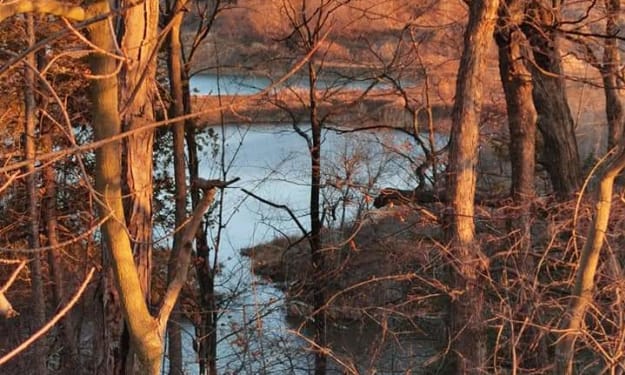 As the shadows lengthen beneath the trees I begin to shiver. Cold, I awaken. Jaxon and Sara are still snuggled together sound asleep, and I decide not to bother them. I used my shirt as a sponge earlier so don't have anything dry to put on. It's time for me to go. Gathering my wet clothing quietly I rest gingerly on the log as I pull my shorts and shoes on. Crossing the clearing I don't look back. With my eye on the trail, I head back to my cabin. As my home comes into view I smile in contentment. Hugging the memories of my afternoon to me I quickly step onto my porch. Looking out at the forest I raise one hand to my new friends and wish them well on their journey.