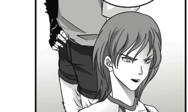 "You deserve better than that," he says softly, his large hand coming to rest reassuringly on her shoulder. "Come here."