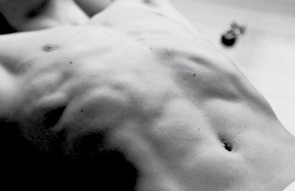 His sculpted chest rose and fell hard, broad shoulders pulled tautly, and his stomach clenched as he tried to regain his breath. His abs were cut to perfection, the thin trail of black hair made her eyes drift down and she blushed when she saw he was wearing boxer briefs where he still had a hard-on. Then her eyes can't help but take in all the strange tattoos on both his arms. It's a variety of patterns that almost look robotic.