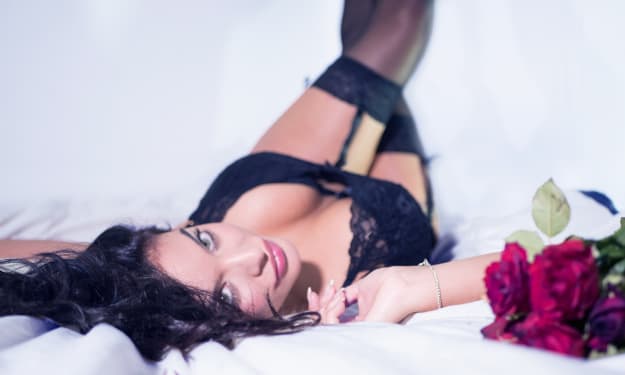 "Yes..." Delia didn't even register that she'd spoken. She was responding to the woman on autopilot as she fell deeper and deeper into her eyes, feeling herself swept away in them. But that was alright. It was easy to listen and obey the beautiful woman, especially when she suggested that Delia would follow her. Delia did, her mind blissfully empty, leaving behind the line and her guaranteed night of clubbing with the other gothed-out revelers waiting for DJ Marqd. The very idea of going anywhere that the woman didn't go seemed insane. She might as well have been tugged along on a leash that the woman held in her hand, told to wait like a good girl, as the woman led her to a brownstone in the expensive part of town, and commanded her to sit on a fainting couch. Delia felt her thighs warming as she realized her lust for this mysterious woman. Her helpless brain, entranced by the stranger's charms, offered no resistance, as it directed her eyes to stare once more into the green depths of her eyes. Then, the woman's fingers were easing into her, pushing through the fishnets and past the tiny black thong that Delia had bought for the club. Delia felt herself clamp onto the woman's hand, moaning and thrusting her hips to get those long, pale fingers deeper inside her. Her body ran on instinct, but the woman was skilled, too. Her thumb stroked Delia's clit as Delia rode, first one finger, then four. They curved just so to hit Delia's most secret inner button, but that still wasn't enough. It was impossible to come, and Delia needed more, some greater penetration that her empty mind couldn't find the words to request. Then, she felt it: the delicious rending, the piercing of her bare neck, and the sudden submission, so deep and complete that she knew it was a kind of death. As her blood ran into the woman's greedy mouth, Delia came, obedient and helpless in her lust. She came again, then again, each time stronger than the last, each time accompanied by a languid, erotic lick across the bleeding wound on her neck. Never had Delia felt such pleasure. She'd never imagined this intensity was even possible. Now, she was its slave. As the light and her consciousness dimmed to blackness, she knew the true meaning of pleasure.