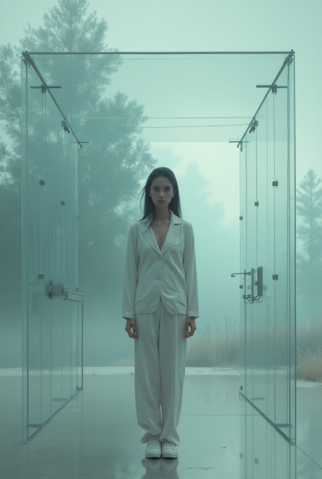 We ran away. Beyond the Cube. Where the grass couldn’t be corrected. Where you could scratch yourself, get sick, freeze... but live. My legs ached from the cold. For the first time in years, I felt hunger real, not simulated by the System.