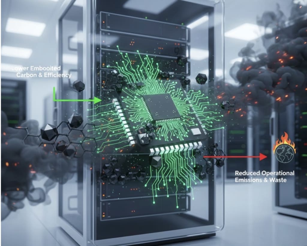 Carbon abundance and sustainability. Carbon feedstocks are globally available and can be sourced from biomass or waste streams, which—paired with the right manufacturing—offers a more sustainable long-term path than rare semiconductor chemicals.