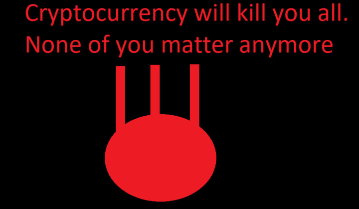 I finally get past all of the people and make my way outside into the fresh air. All around me the digital billboards on all the buildings are promoting various products and services. I start walking to the subway when I see a billboard that peaks my interest. It appears to have been hacked as the message on the billboard says “Cryptocurrency will kill you all. None of you matter anymore” and had some weird symbol with a circle and three lines coming out of the top of the circle.