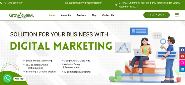 Grow Global Infotech is a result-oriented digital marketing company in Jaipur offering comprehensive marketing and IT solutions. They help businesses expand their digital footprint through SEO, content marketing, and social campaigns.