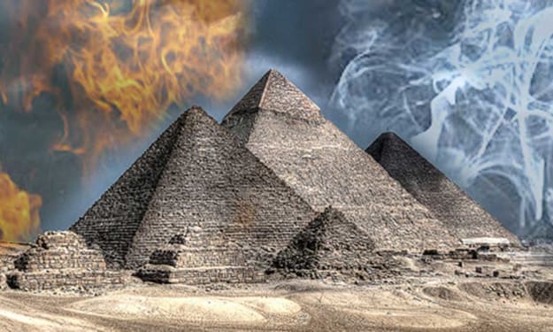I perceived a shift in times and I saw there were those that were nomads and they controlled the landscape and enslaved those that had been agriculturally bound. I could tell this took many years to evolve, but gradually the original inhabitants were able to fight off the ravagers known as nomads and forced them to leave their city. They were driven to another land and as they left I saw a great body of water open and swallow them. Darkness fell again and a bright full moon filled the scene. The Great Pyramid embraced the new light and almost reached out to it.