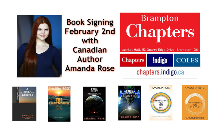 Amanda will be at Chapters in Brampton for a Book Signing February 2 from one to five PM. Come out to meet her and get your book signed!
