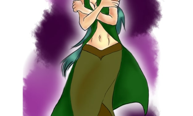 Priscilla had to duck out of the way of the stalk that flew in her way and landed next to her. Looking down in shock, Priscilla noticed that her clothing had changed. It went from a simple green top and trousers to a long flowing white dress with draping sleeves and shirt cuffs. The Stalk cocked its head to the side and watched, as Priscilla was pulled underneath the water and the brain slowly moulded into the form of a person. It held onto her hand and guided her through the underwater beauty. Everywhere she looked was a new and wonderful sight. Priscilla saw all the creatures of the underwater realm. Re-surfacing from the water, Priscilla rolled out onto a warm black floor. She was back in the realm of her void. The dark blank canvas of her mind her inner thoughts and her darkest dreams.