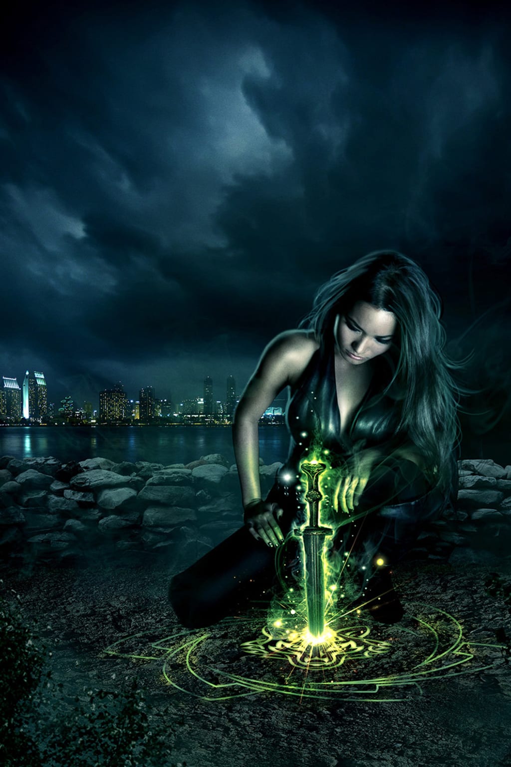 The sound of rushing water was not far ahead of us, but a second pair of eyes stared right back at us, slowly walking out of the shadows. My heart jackhammering in my ears, my skin running cold with the knowledge of knowing that we may die here today. Phoenix picked up a rock and threw it but missed. Whirling around to comfort the hound, expecting another aerial attack as I unleashed a bright blueish gray light instead hitting the tree. This was smarter and different from the last one.