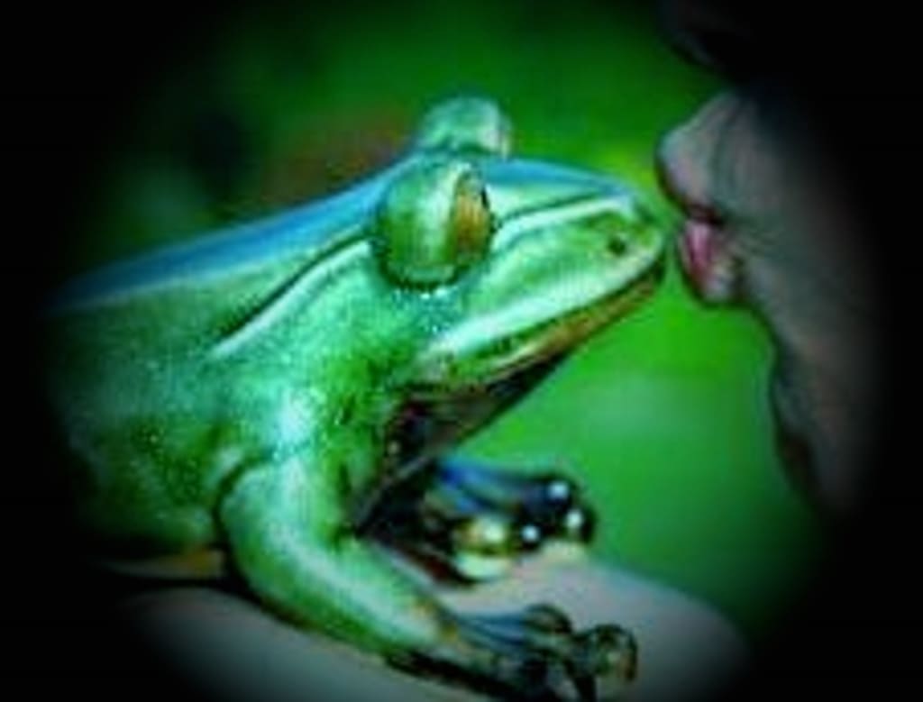 When she heard me, she turned and hissed, and she pointed her crooked fingers at me. “You will tell no one about me!” she screeched. “Henceforth, your voice will have no meaning except to the fertile females of your kind. You will soon forget who and what you were, and only the kiss of a regal maiden will release you from this imprecation, and only if it happens before you forget!”