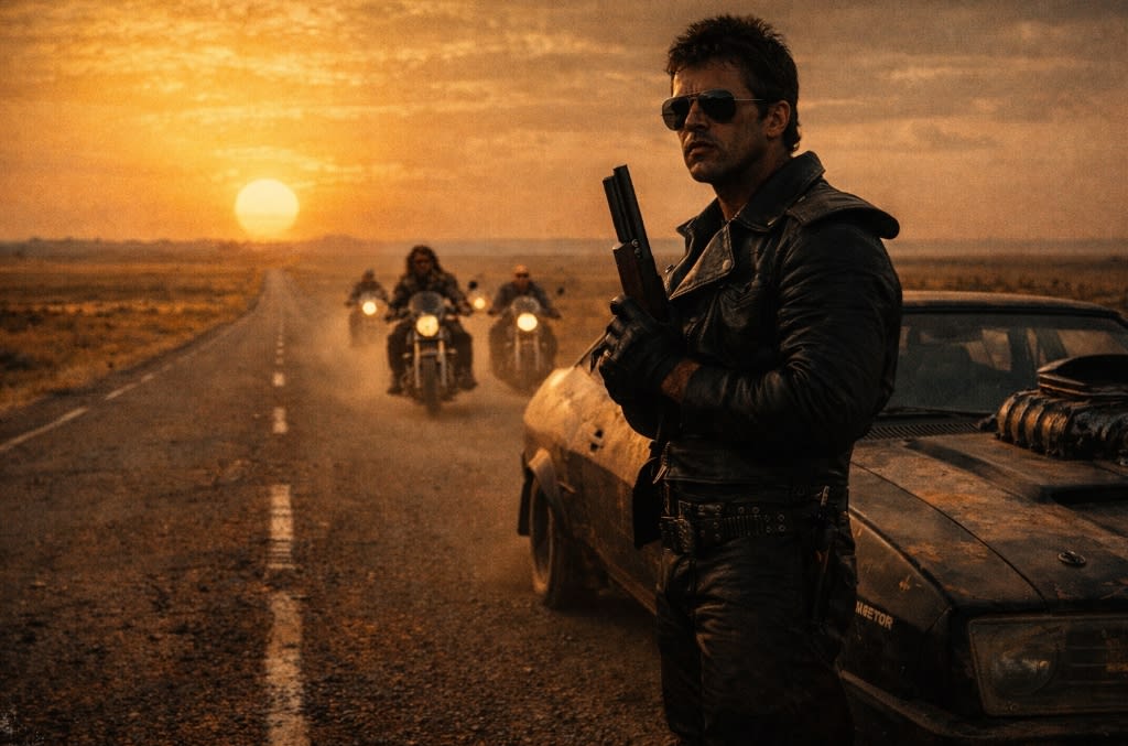 Mad Max front-loaded a franchise of post-apocalyptic comic-book tales of a high-octane future with scavengers and psychopaths—bad men of the post-nuclear war wastes—and the baddest moflicker of all: the noir anti-hero in hot black leathers, with an impossibly handsome, scruffy countenance, a national treasure who would one day torpedo his own incomparable career. Yes, you guessed it (you already knew): we’re talking about Mel Gibson.