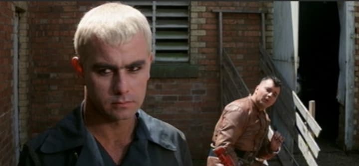 It isn’t long, though, before Toecutter (Roger Ward), a really weird, somewhat portly Aussie version of Manson, and his gang show up—this includes the hyper-eerie, sexy, bleach-blonde badass psychopath Bubba Zanetti (Geoff Parry), one of the best things in the movie, and “Johnny the Boy,” a pathetic earthworm of a spineless criminal goon who knuckles under to Toecutter, and whose fate, as far as this picture is concerned, is not a happy one.