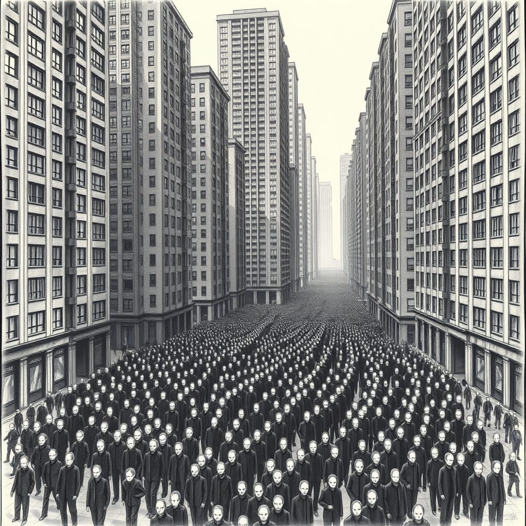 Live sporting and music events were slowly replaced by TV broadcasts. Stadiums and concert venues were "repurposed" and this eventually spread to all gathering places that included churches, pubs and restaurants. The only place that people gathered was in the workhouses where they did the tasks prescribed for them.