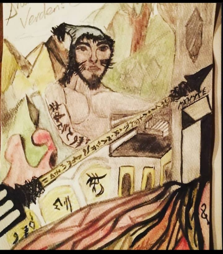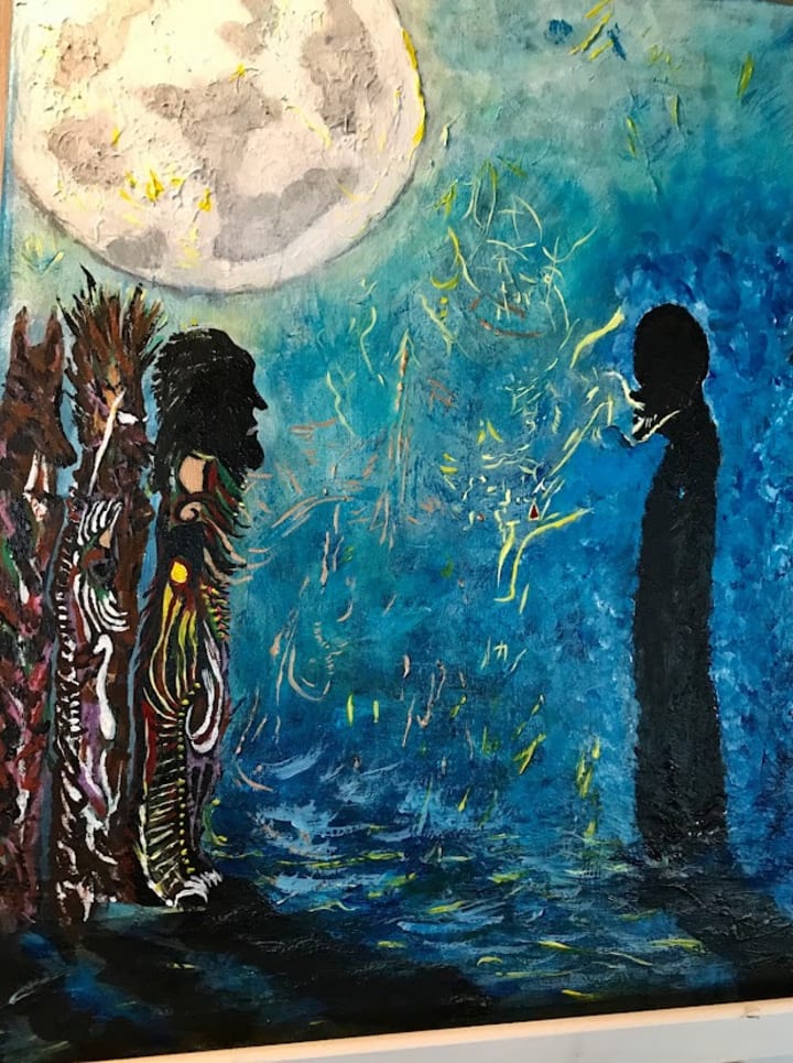 The Master Shadow, ( Marisow) a God in charge of the shadow mind and all the creatures that play tricks on us, hes not evil but is often thought of as evil. (Pictured talking to the 3 tribes of the Americas, hes the blackness of space the darkness of sky.