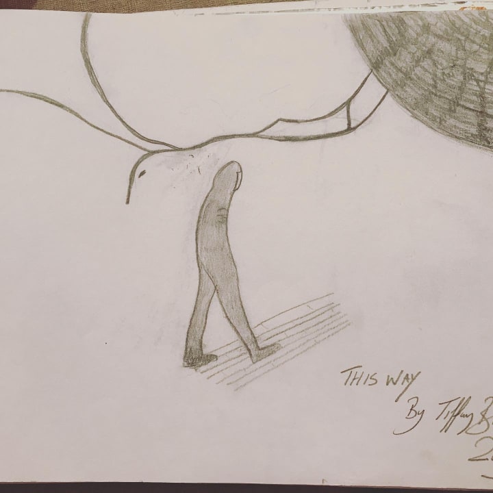 In my mind I thought I heard the bird say, "Now Here Lane, an interesting hillock space." In stillness expansion of my current space began with many changing shapes and colours. As I continued to fixate on the bird I slowly imagined the bird morphing into a humaniod bird shape, I felt for a moment I became the eagle.