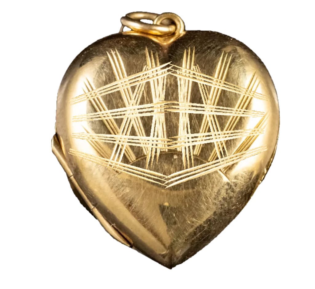 There, on the back of the little heart-shaped locket I’d gotten from Gram was that design. The same design as on the big, main gates. I touched the locket. It popped open. Never have I ever seen that locket open. I’d tried, but it always stayed shut. Very quiet music was now coming from it; the same as I’d heard as I neared the gate. Inside was a number, and some other words, or switches, or buttons, and lights. I showed it to the woman. She set it on the counter in front of her and punched some numbers into her machine.