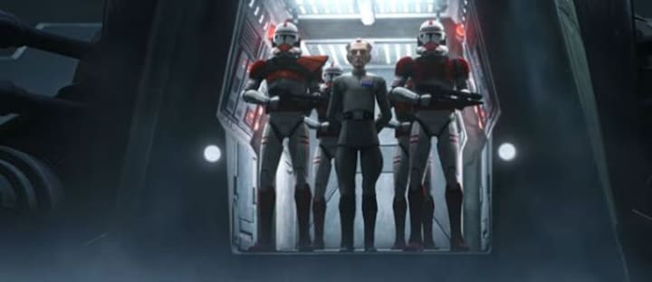Due to their methods, Tarkin questions their loyalty, citing all they knew was the Jedi on the planet Kaller were dead, but not who actually did it. With this in mind, he gives the team an assignment to wipe out Separatist insurgents on Onderon. He also asks the Kaminoans more about the team and their numbers. He is told they are gentetically enhanced clones and that there are now only five left, suggesting there used to be more.