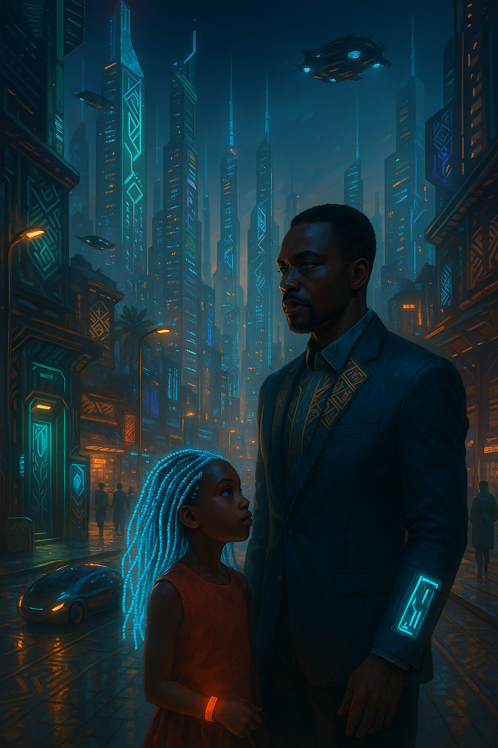 Above the ocean-facing arcologies, drones floated in serene, silent spirals. Below, the streets pulsed with biometric gates and frictionless transport pods. Lagos — once chaotic, soulful, alive — now ran smoother than any human heartbeat. Efficiency was the new rhythm.