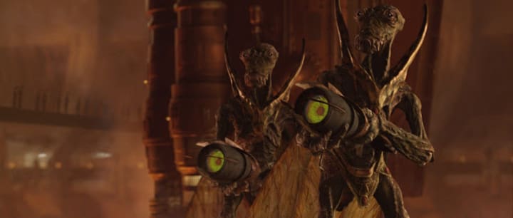 Speaking of Geonosians, the Geonosians are an insectoid-like species that will immediately invoke any bug phobia you may have. The Geonosians are the main opponents in the first battle that starts the Clone Wars, and they are able to pose a significant threat to the clone army and the Jedi. They are also the ones who are responsible for creating the original designs for the Death Star.