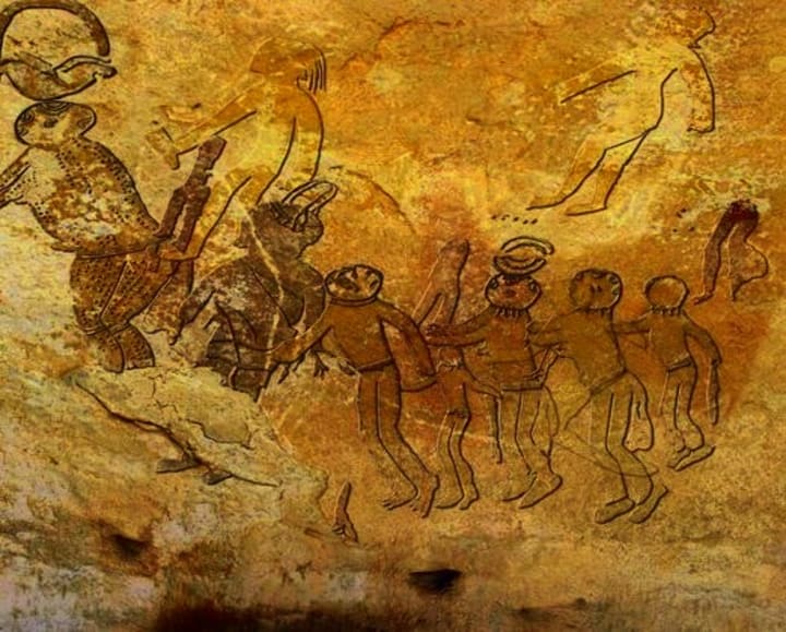 And on some panels were the obvious infantile representations of a people trying to literalize a barely existent language that was now long since unknown. The archaeologists would spend years turning the contents of that cavern into revelation.