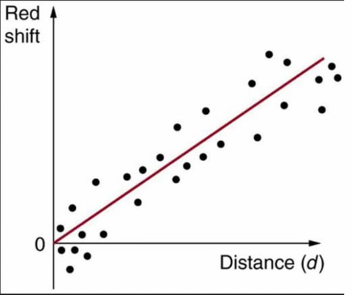 Then come Hubble Laws which state everything is moving away from us, with speed that is proportional to its Distance. Each atom has tiny quantum fluctuations and oscillates up and down emitting energy, Each atom emits its own radiation, As bodies of matter far away emit these radiations, as the radiation reaches us it stretches, making it larger and that of the Color "Red", Thus calling it "Redshift", Mathematically Redshift is equivalent to Velocity/ Speed of Light, Thus, v = cz. Where c is speed of light and z is redshift, We can rearrange this equation to get Redshift. Hubble also discovered "recession velocity" ∝ "distance" , Thus from this relation we can get: v = H(o) x r, Where "v" is recession velocity, "H(o)" is Hubble's constant, and "r" is distance from earth. You may wonder what is recession velocity? Well recession velocity is the speed at which bodies of matter move away from us, It increases with distance so for e.g.: Object which is 2 million light years away from earth has less recession velocity than an object which is 10 million light years away. Thus Recession Velocity Increases with Distance.