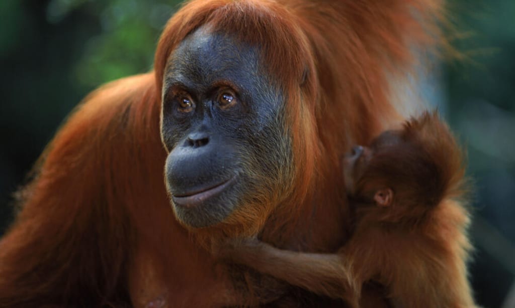Sumatran orangutans may be distinguished from Bornean orangutans (Pongo pygmaeus) by their longer fur, more slender build, white hairs on the face and groin, and long beards on both males and females, but molecular characters are considered most definitive. Both species have experienced sharp population declines. A century ago there were probably more than 230,000 orangutans in total, but the Bornean orangutan is now estimated at about 104,700 based on updated geographic range (Endangered) and the Sumatran about 7,500 (Critically Endangered). Rapid deforestation in Sumatra has resulted in the loss of its natural habitat, pushing this species to the brink of extinction. Illegal hunting and the illegal pet trade further exacerbate the threat.