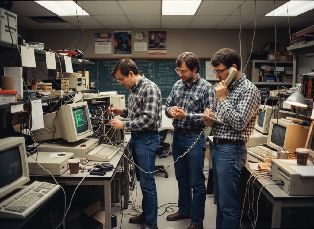 This was the era of soldering irons, circuit boards, and green glow monitors.