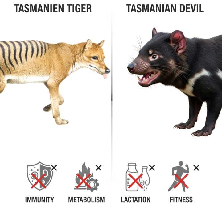 A new 2025 study dug even deeper into the thylacine’s genetic history. Using machine learning and comparisons with other marsupials like the Tasmanian devil, researchers discovered that the thylacine had lost four important genes sometime between 13 million and 1 million years ago. These genes SAMD9L, HSD17B13, CUZD1, and VWA7 played roles in immunity, metabolism, lactation, and overall health.