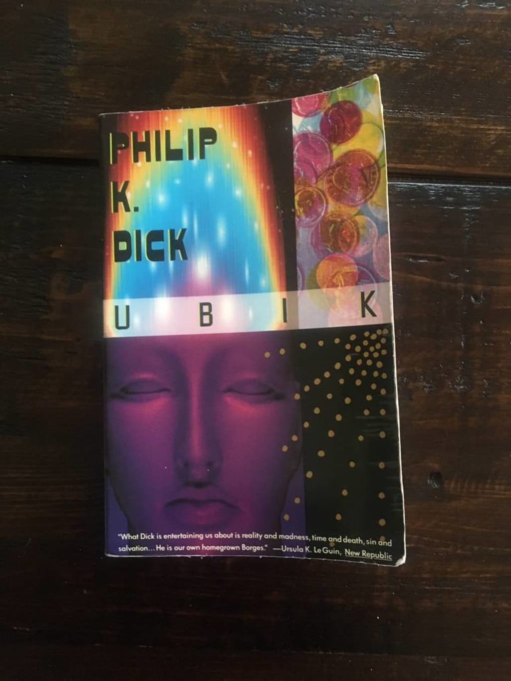 Going into reading Ubik, all I knew was that Philip K. Dick was its author and that it was some kind of science fiction. Unlike other editions of the book, the cover of my copy shows not a spray can of the eponymous substance, but a mix of strange, colorful, clipart-y images. I was so ready to get reading what promised to be a mind-bending sci-fi tale.