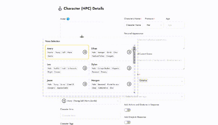 Adding a visual component to AI interactions enhances engagement, making chatbots feel more present and expressive. Platforms like RPGGO incorporate animated avatars that simulate facial expressions, body language, and gestures, creating a more interactive experience.