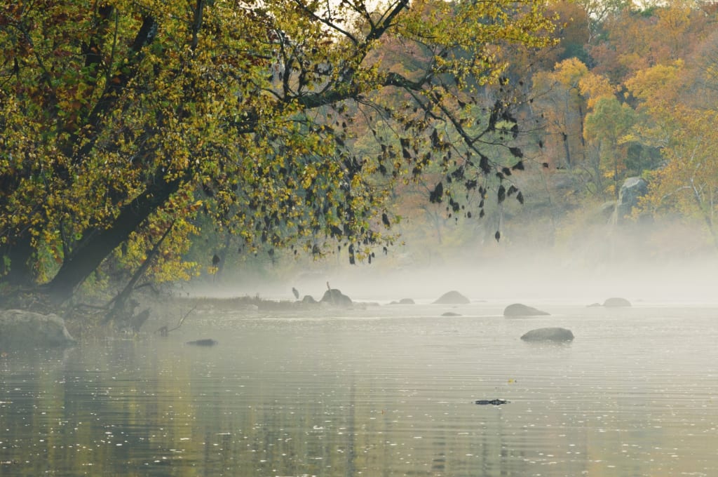Alsoomse was already tired of the day’s work, and the mist hadn’t yet lifted from the cool, quiet waters of Aquia Creek. As all the Patawomeck women and young boys did each morning, she had risen early and prepared for another day of tending the tribe’s nets. It wasn’t the most arduous task that the elders and the Dictates had laid down but neither was it the least. After a winding trudge through the Silver Maple trees that grew so thick on the banks of the Potomac river, she had shucked out of her patchwork of skins and salvaged old-world cloth and slid down into the icy waters of the creek. Since then she had spent her time half-wading, half-swimming between the tall catch-poles, checking their nets. They stood like thin, boughless, aquatic trees, marking where each net was set and anchoring its possible contents. Now, shivering and with numb fingers, she rested, lay back on the relative dry of the bank, and looked up as the sun began to flicker through the lighter patches of mist. She watched as a samara, disturbed by a squirrel or a gust of wind floated down spinning a drunken jig towards the creek.