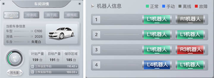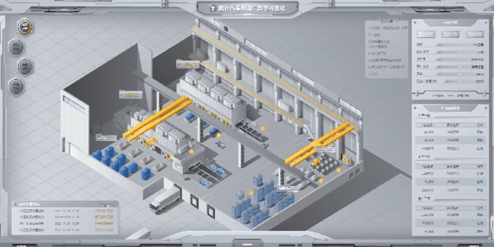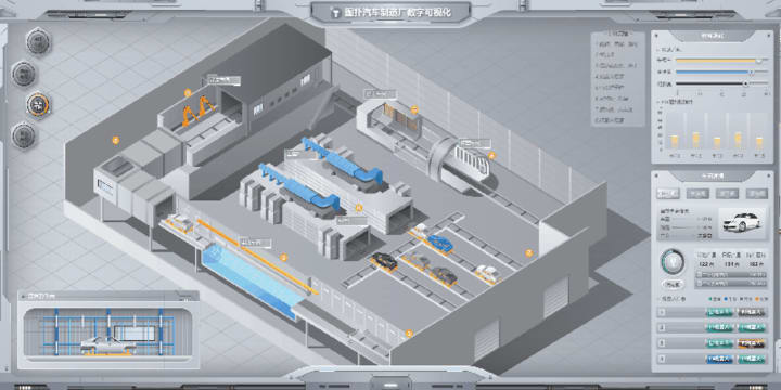 The statistics of the electrophoretic parts, intermediate time, drying room, and decoration room in the paint shop can be conveniently displayed. The system also supports combined VR/AR display, allowing users to immerse themselves in the virtual environment for experiences, especially for large-scale scenes such as factories, workshops, and production lines.