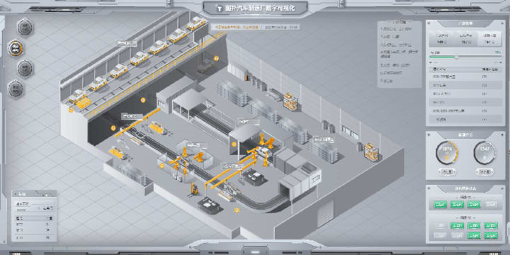 Hightopo software builds a complete digital simulation of the automobile production line process from 2D to 2.5D through data model + UI library + 2D topology, aiming to contribute to the construction of “digital twin + configuration monitoring + industrial Internet” and realize intelligent manufacturing.