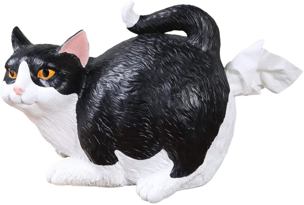8. Cat Butt Tissue Holder - Black & White Tuxedo - Fits Standard Square Tissue Box - Resin