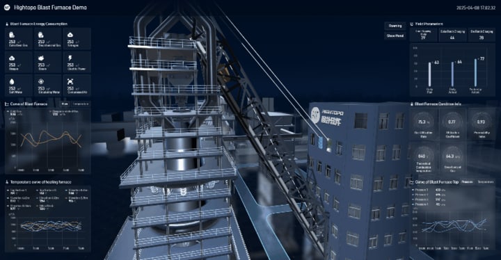 Using the “HT for Web” graphics engine, by integrating advanced 2D and 3D rendering technologies, we have built a complete digital mapping system for blast furnace ironmaking, providing in-depth data analysis support for management and effectively improving operational efficiency across all stages of smart blast furnace iron production.