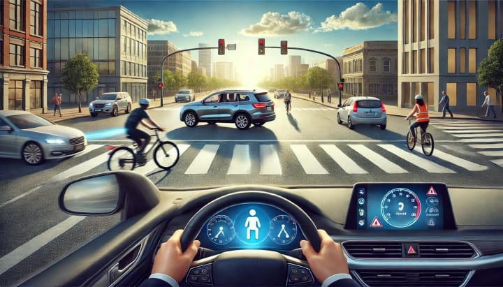 Check for Cyclists Before Turning: Look over your shoulder to ensure no cyclists are in your blind spot.