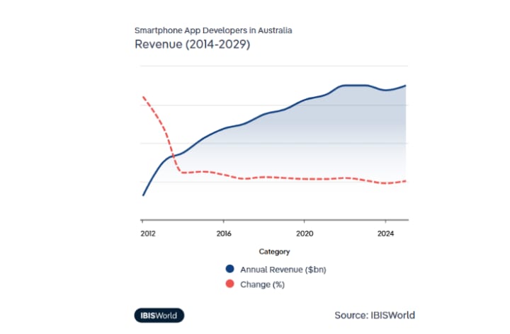 The Australian app development industry is quite fragmented, which is why it has a low entry barrier. So, even if you have little to no coding knowledge, you can get into app development. Self-learning platforms, accessible development tools, and affordable software have made it possible for independent developers and small startups to compete alongside bigger firms.