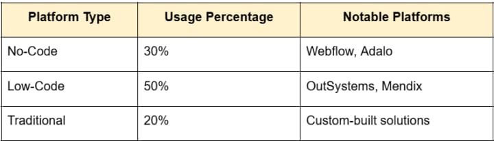 This table helps you understand that while traditional coding still has its place, low-code and no-code solutions are dominating because of their speed, cost efficiency, and accessibility. They’re especially useful for small businesses trying to launch apps quickly without a huge budget.