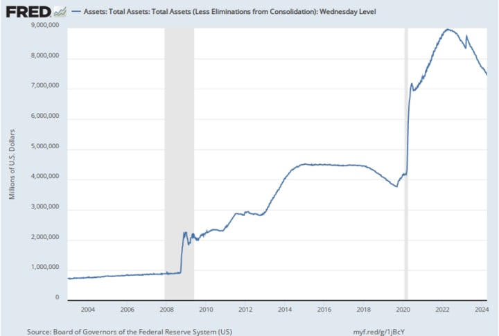 The Federal Reserve has pursued a quantitative tightening (QT) strategy to reduce its Treasury and mortgage-backed securities holdings. This deliberate unwinding of its balance sheet has already resulted in the removal of several trillion dollars at a monthly reduction pace of $90 billion. While this strategy contributes to M2's contraction, it's crucial to recognize that such measures are necessary to restore a semblance of normalcy to the financial system.