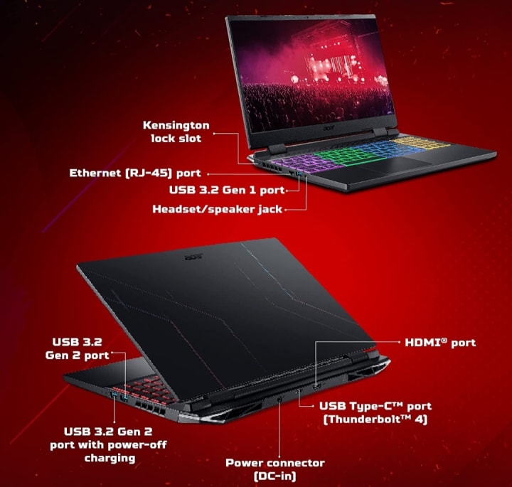 evice that is designed for gamers who demand the best in terms of speed, power, and graphics. This laptop is powered by a 12th Gen Intel® Core i7-12700H Processor, which provides lightning-fast processing speed and powerful performance. The laptop comes with 16 GB DDR4 RAM, which enables gamers to run multiple applications and games simultaneously without any lag.Overall, the Acer Nitro 5 Gaming Laptop is a high-performance device that is designed for gamers who demand the best in terms of speed, power, and graphics. With its powerful processing speed, high-quality graphics, and sleek design, this laptop is perfect for gamers who want to enjoy an immersive gaming experience wherever they go.