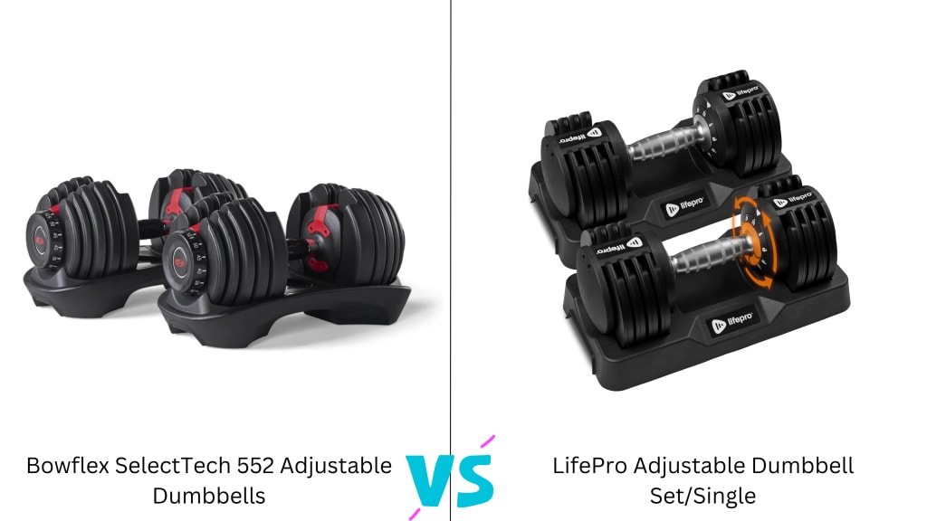 Comparing Bowflex SelectTech 552 vs. LifePro Adjustable Dumbbell Set/Single.