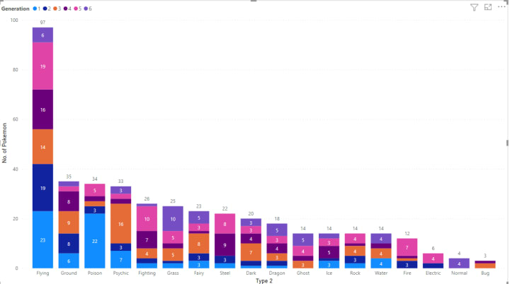 Interesting… Flying is more of a Secondary type for most of the Pokémon, also we can see few of the Pokémon’s only have the second type(as the total count is less than the actual No. of Pokémon).