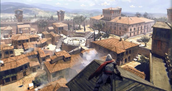 In Assassin’s Creed Brotherhood, the town is tragically besieged by Cesare Borgia and the Papal Army, leading to the death of Mario Auditore, Ezio’s beloved uncle. The villa is destroyed, marking a significant turning point in Ezio’s journey. The Auditore family remains linked to Monteriggioni even in the modern-day Assassin's Creed narrative, with the ruined villa becoming a hideout for the modern-day Assassins.