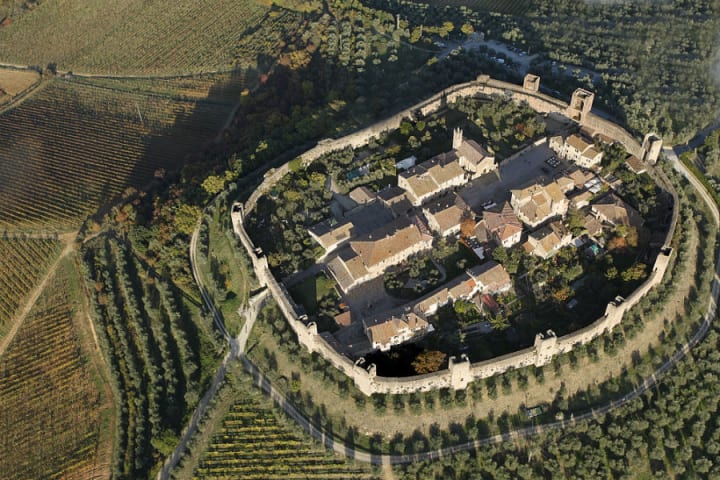As you can see the real Monteriggioni has no Villa Auditore. It was built by the Sienese between 1213 and 1217 AD as a strategic fortress. Its role was to protect the region during the Sienese-Florentine wars in the Middle Ages. The town's iconic outer walls and towers are remarkably similar to the game’s depiction, making it a perfect setting for the game's story. With two main gates one facing Florence and the other Rome. Monteriggioni is located on a hilltop, offering a strategic vantage point over the surrounding valleys.