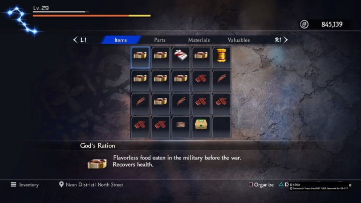 Inventory management is also an integral part of the game where you manage your items from consumables to equipment. Consumables will replenish your health, some will grant you extra star points for burst mode, more orbs, and other bonus attributes. Equipment is what you need to increase your main stats. I mean you can be badass all you want pulling sick moves with ridiculous health bars, but you take every help you can to better yourself with higher stats.